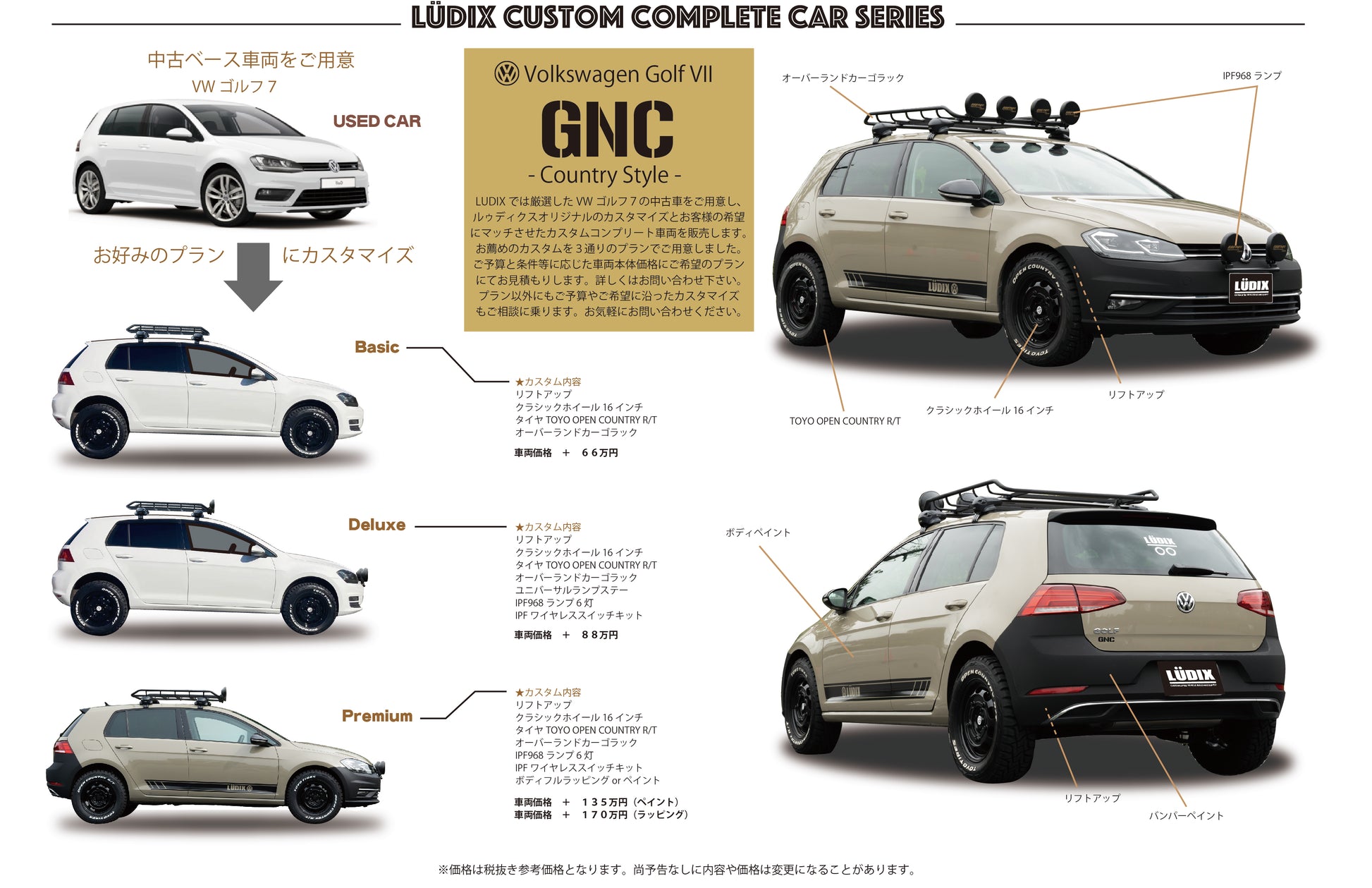 フロントは、車両問わず使用可能なLUDIXオリジナルのランプステーを用いています。
